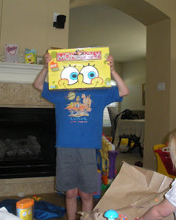 Ruby and Eliza Claire were insistent on getting Rehm something Sponge Bob for his birthday. The final three choices were Sponge Bob Sorry, Monopoly and Operation. Monopoly won. Obviously, Rehm didn't like it one bit.